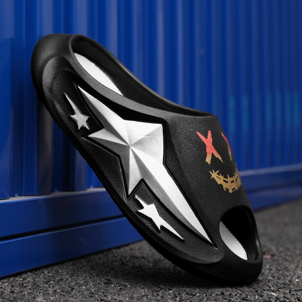 Комбинация шаг на дерьмо чувство одно слово перетаскивание лето Douyin прямая трансляция звездная пара мягкая подошва спорт прилив национальный прилив тапочки мужская обувь