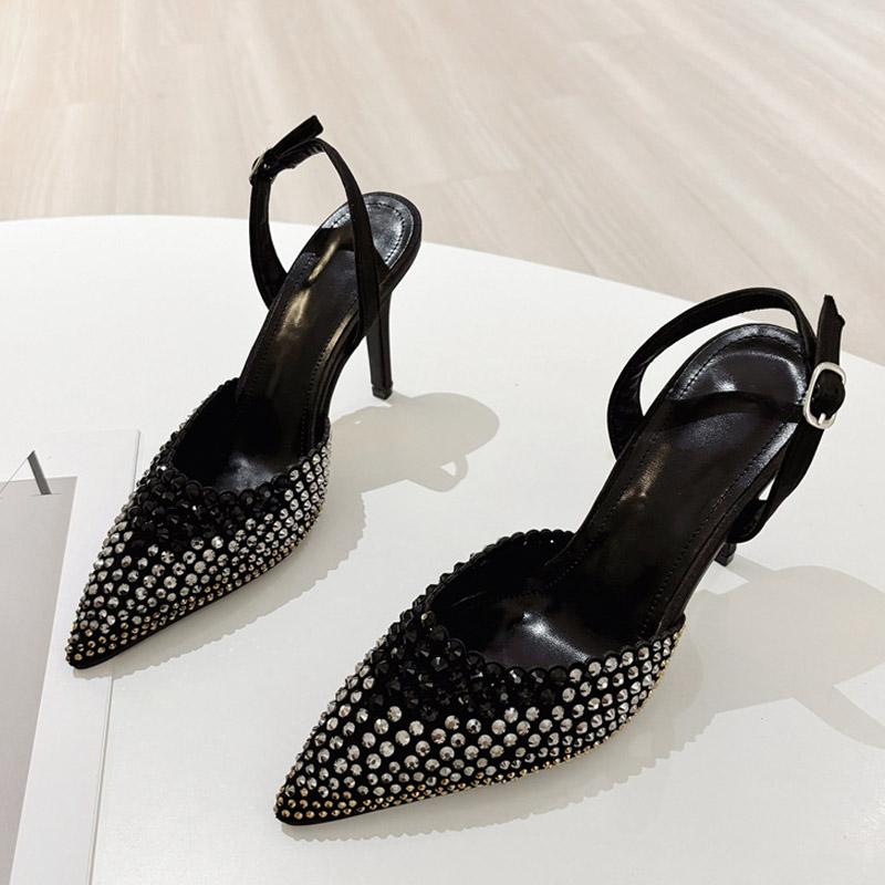 Liyke Сексуальные туфли с открытой пяткой Женские туфли-лодочки с острым носком и пряжкой сзади Черные туфли-мюли Сандалии женские