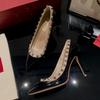 Туфли-лодочки на высоком каблуке нюдового цвета с острыми заклепками для женщин, новый сексуальный стиль королевы, тонкий каблук, французский вырез, одиночная обувь