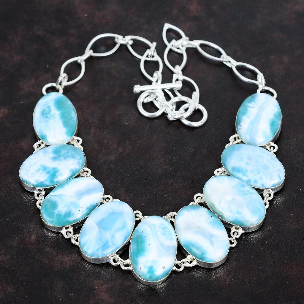 Ожерелье из ларимара, ожерелье из натурального драгоценного камня, ожерелье из стерлингового серебра 925 пробы, регулируемая цепочка, дизайнерские украшения ручной работы, подарки для друга