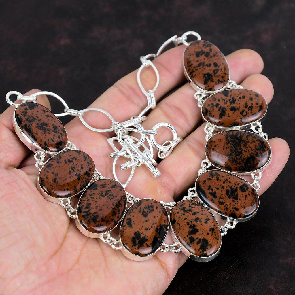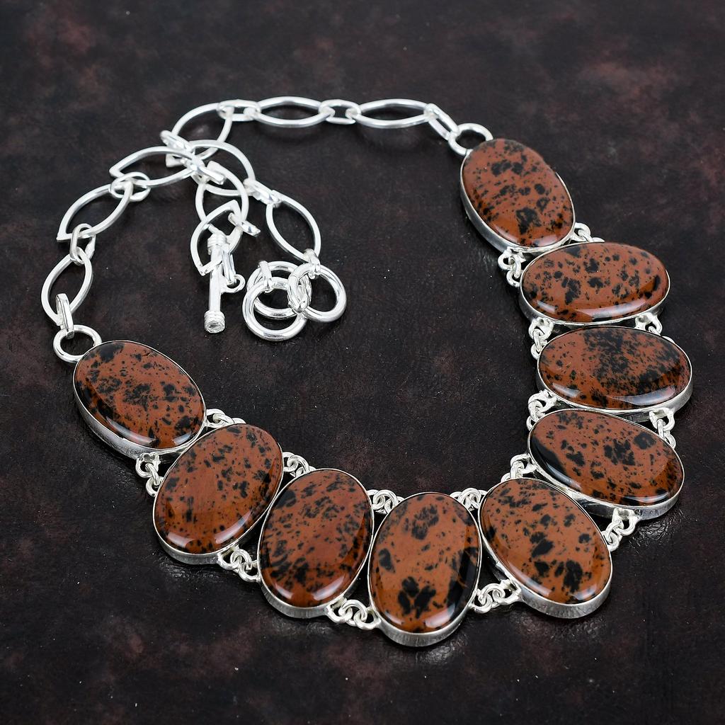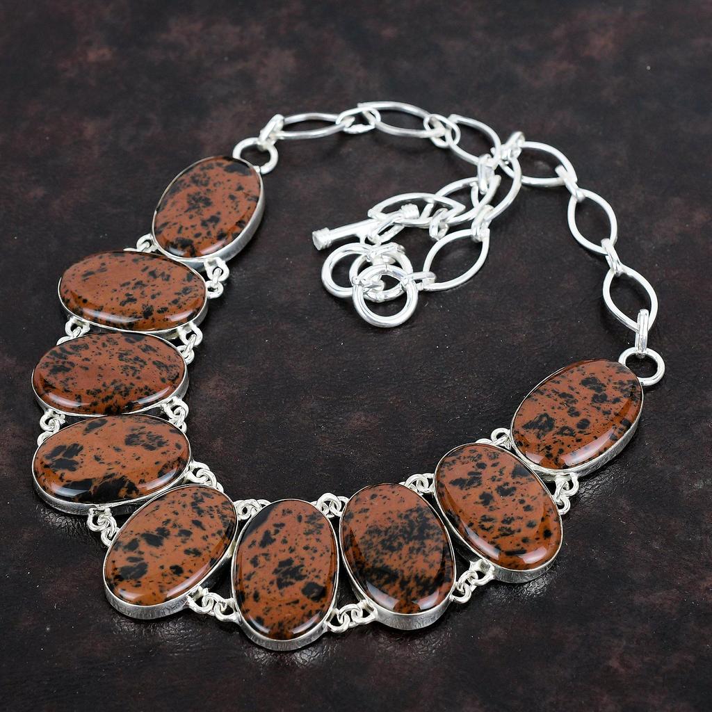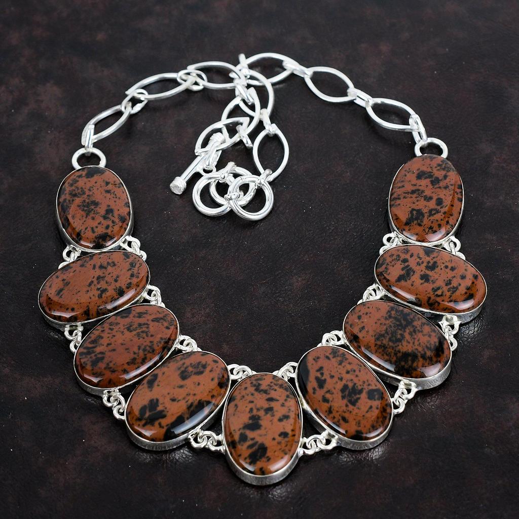 Ожерелье из махагонового обсидиана, уникальное украшение, ожерелье из стерлингового серебра 925 пробы, ожерелье с регулируемой цепочкой, ожерелье ручной работы, подарки для мамы