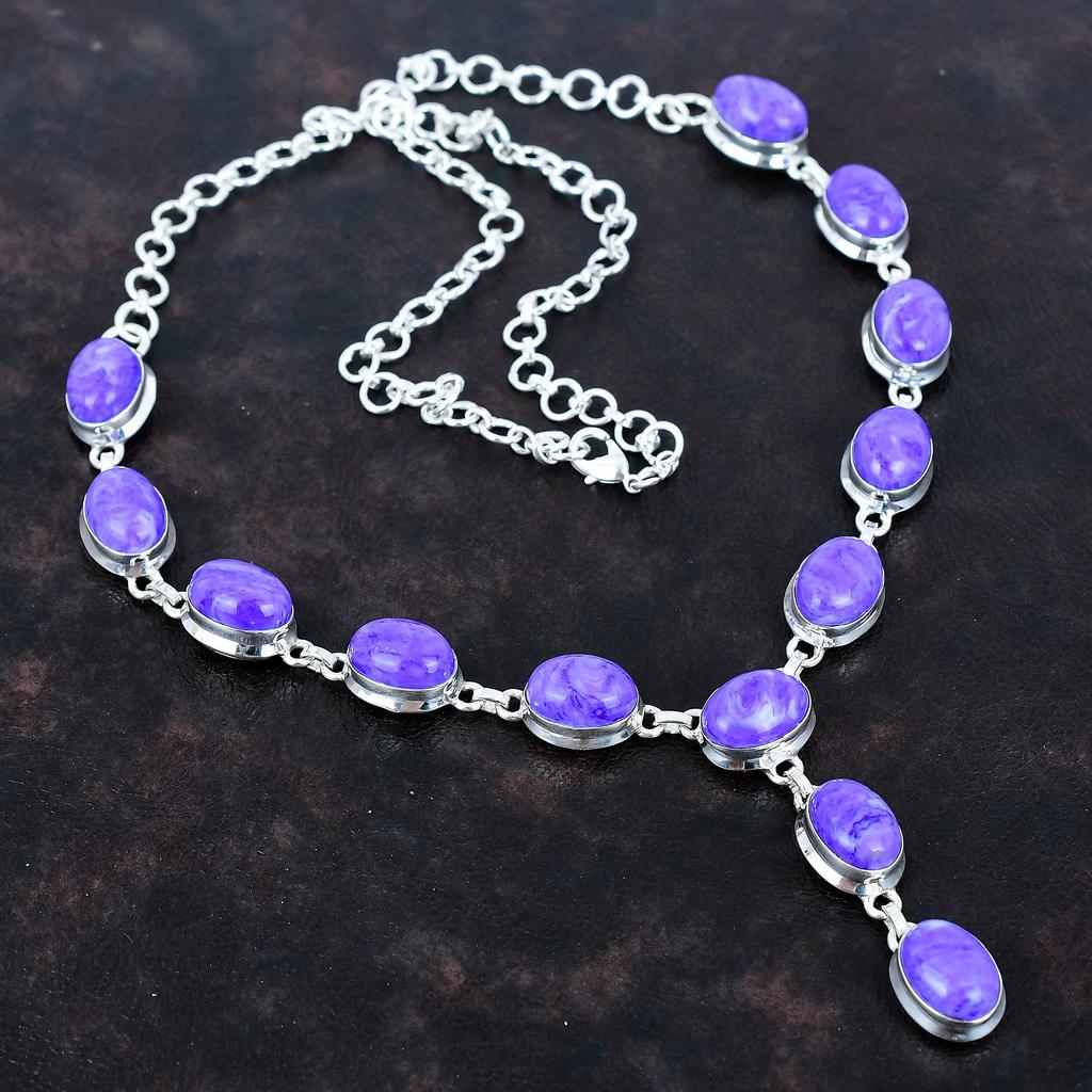 Ожерелье из чароита, ожерелье из стерлингового серебра 925 пробы, регулируемая цепочка, ожерелье из драгоценных камней ручной работы, ювелирные изделия из натурального чароита, подарки для женщин — купить товар онлайн с бесплатной доставкой по всему миру!
