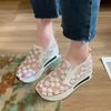 Chaussure Femme Модные женские сетчатые вышитые дышащие туфли на толстой подошве с танкеткой, повседневные и удобные спортивные туфли