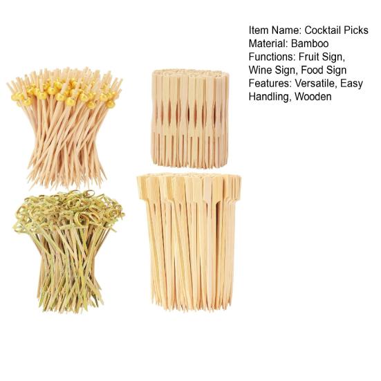 Стильная презентация еды: Поднимите свои кулинарные творения на новый уровень с помощью наших бамбуковых шпажек для коктейлей, которые добавят им нотку элегантности и изысканности.. Эти декоративные шпажки идеально подходят для украшения подносов для барбекю, напитков, закусок, фруктовых шашлычков, десертов, сэндвичей, гамбургеров и шведских столов, они улучшают визуальную привлекательность ваших блюд.