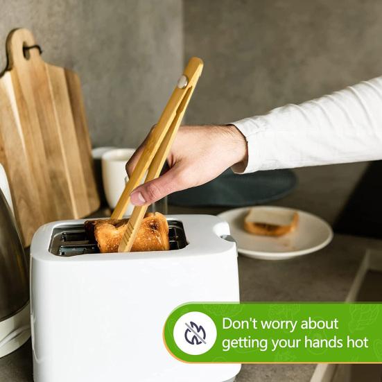 Премиальные материалы: Наши щипцы для тостов изготовлены из натурального бамбука с высокотемпературной обработкой, не содержат вредных веществ или лакокрасочных покрытий, что делает их безопасными и экологически чистыми кухонными принадлежностями для повседневного использования.