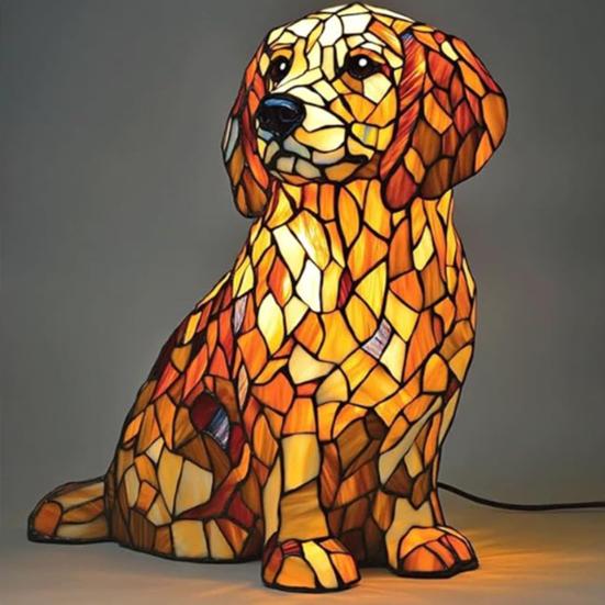 Искусство витражей в стиле ретро: Каждая лампа, вдохновленная собаками, демонстрирует замысловатые витражи, напоминающие винтажную эстетику, передающие игривую сущность любимых пород собак, таких как корги и французские бульдоги.