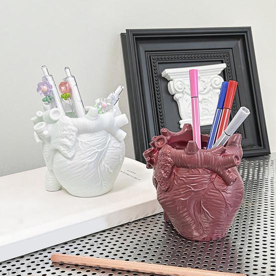 Маленький держатель для ручек в форме человеческого сердца, реалистичная 3D-модель анатомии сердца, настольный органайзер для хранения кистей для макияжа, ручек