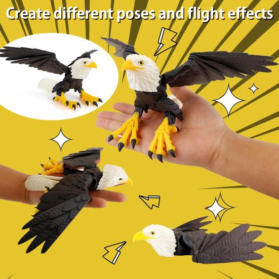 Динамическая гибкость: Модель орла с гибкими крыльями позволяет настраивать положение крыльев, предлагая разнообразные позы и эффекты полета.. Уникальная конструкция шарнира позволяет легко регулировать угол наклона для динамических дисплеев.