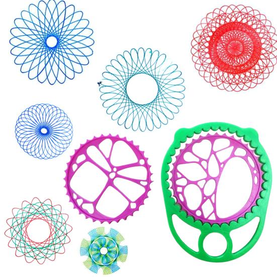 Простая операция: Работать с этими спиральными круглыми шаблонами очень просто — просто нанесите клей на заднюю часть зубчатого венца, закрепите его на бумаге, вставьте шестерню в неподвижную шестерню, поместите кончик ручки в круглое отверстие и с легкостью создавайте замысловатые узоры без каких-либо сложных шагов.