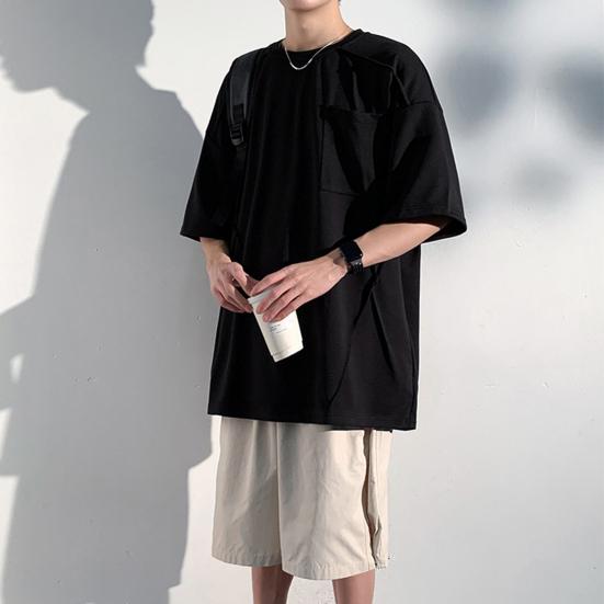 Представляем стильную и универсальную футболку для мужчин. Этот топ с круглым вырезом и короткими рукавами отличается непринужденным и свободным кроем и идеально подходит для различных случаев.. Уникальные трехмерные плиссированные линии привносят нотку современного дизайна в классический стандартный стиль.