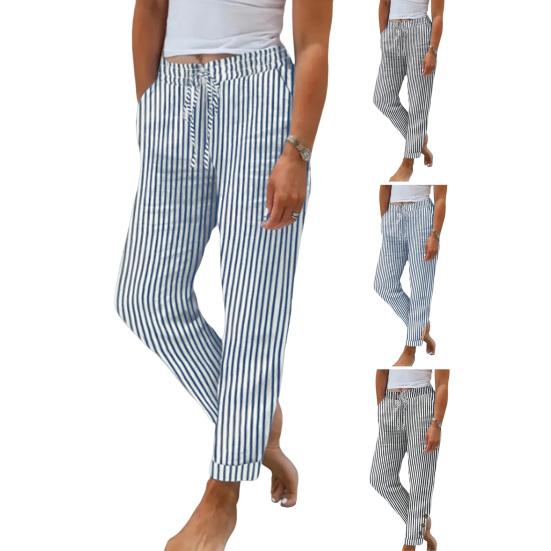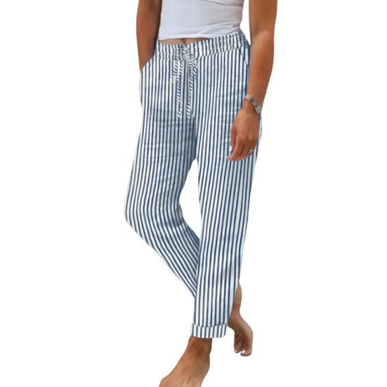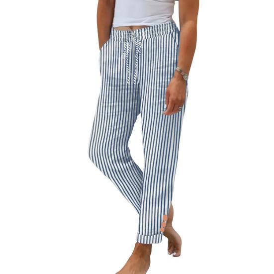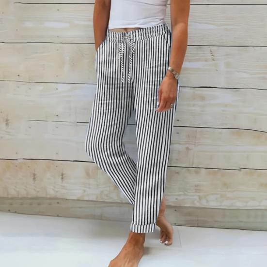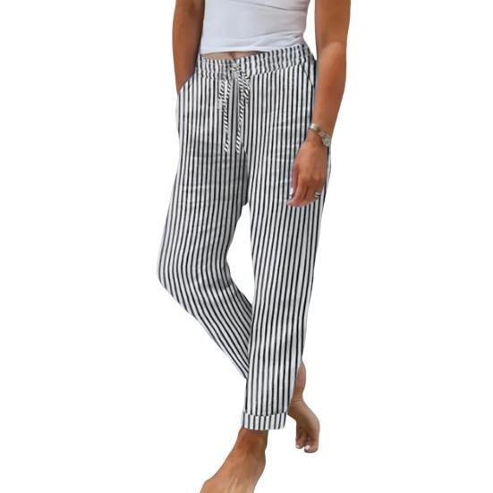 Регулируемая эластичная талия: Эти полосатые льняные брюки, оснащенные поясом на шнурке, представляют собой вариант, который можно подогнать под себя, что гарантирует как безопасность, так и привлекательный силуэт.. Регулируемая эластичная талия добавит удобства и стиля вашему гардеробу, гарантируя идеальный вариант каждый раз.