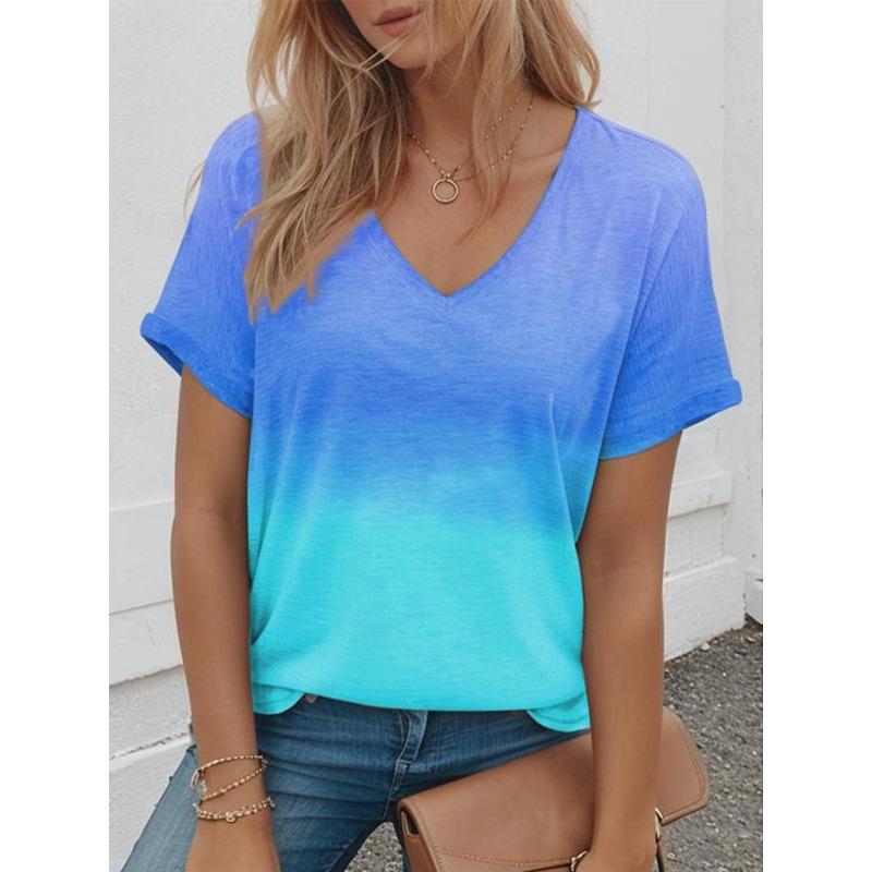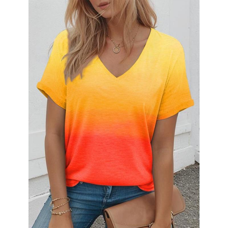 Футболки для женщин с 3D-градиентным принтом, футболки, повседневная уличная женская одежда, летняя мода, свободная футболка, женская одежда Y2k с V-образным вырезом