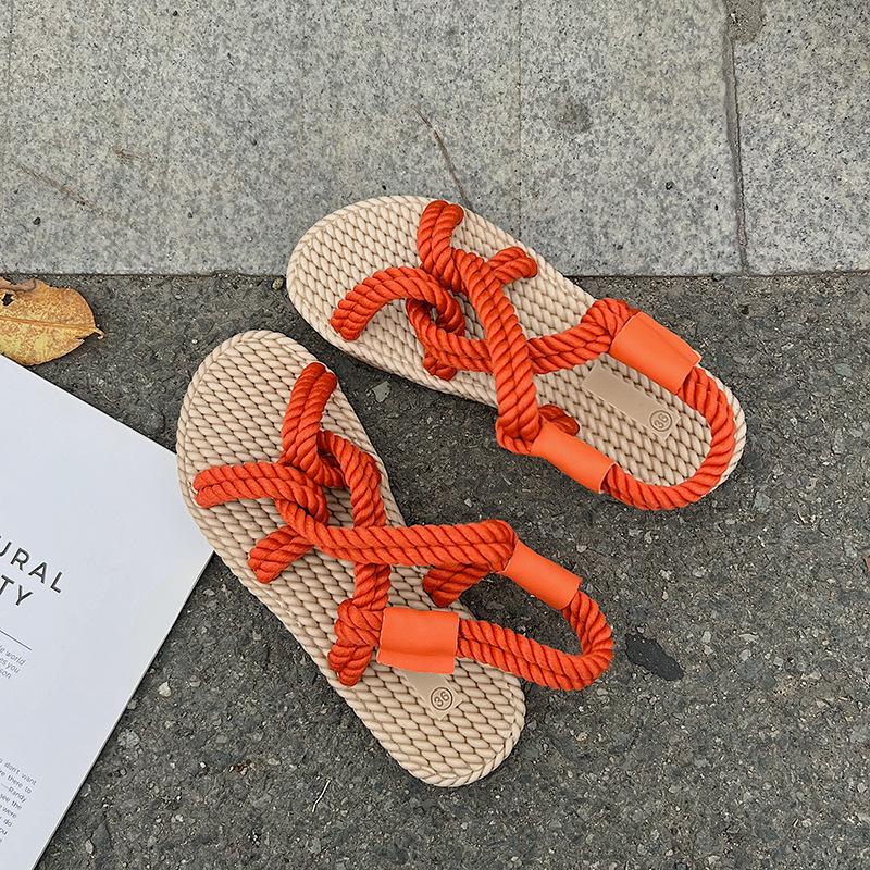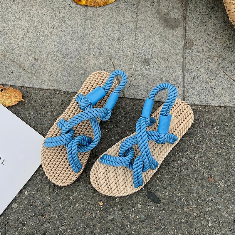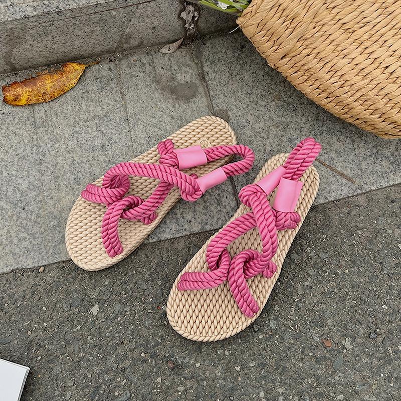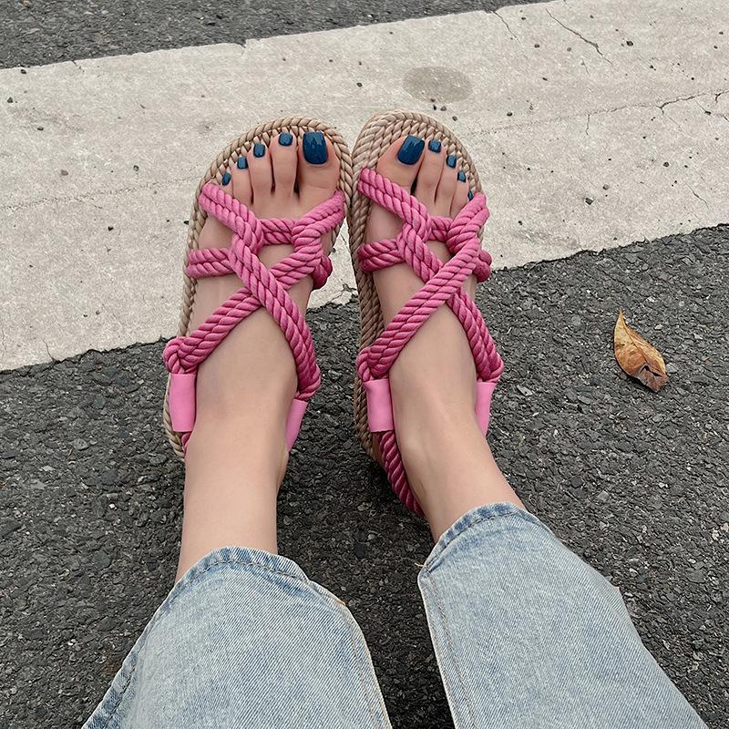 2025 лето новая корейская версия плоские пеньковые веревочные женские сандалии студенческие повседневные модные иностранные торговые пляжные сандалии большого размера женские