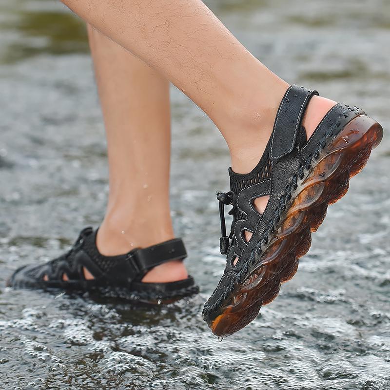 Classic fashion summer high-quality hand-sewn breathable leather sandals outdoor beach large size shoes men's Hugh Shoes