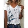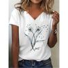 Новая женская футболка с простым цветочным принтом, футболка больших размеров, летняя женская одежда, дизайнерская, с коротким рукавом, с V-образным вырезом