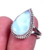 Натуральный голубой ларимар цельное серебро 925 пробы ручной работы кольцо-груша размер US8.5 MK-05