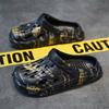 Пара больших тапочек, летние новые модные тенденции, дырявые туфли, одна нога, наступающая на дерьмо, садовые сандалии