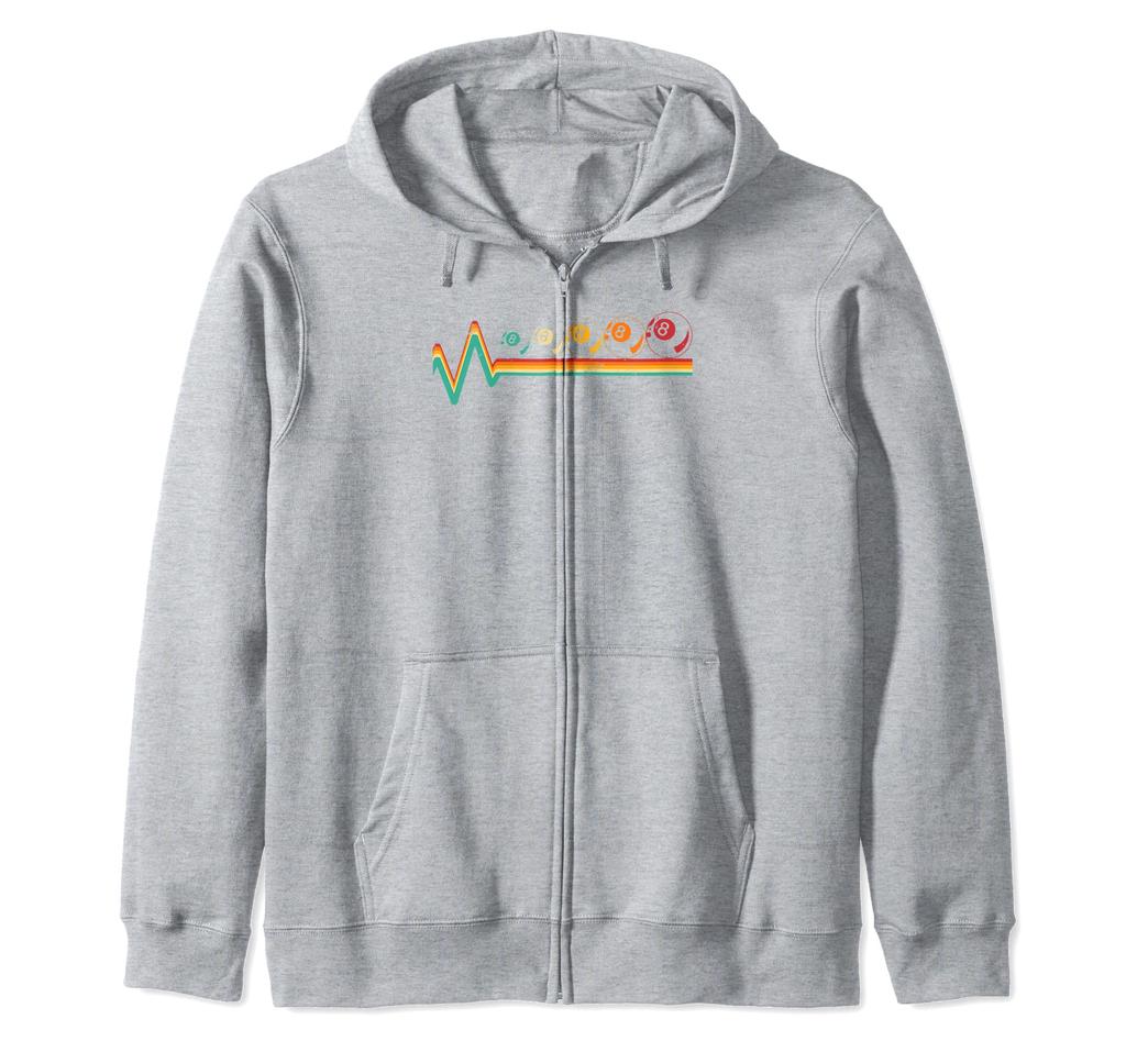 Толстовка с капюшоном на молнии с ретро-графикой для пула, бильярда, снукера, бильярдного кия, 8 шаров, мела