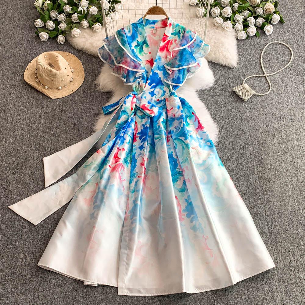 Элегантные длинные платья с цветочным принтом для женщин, летние, праздничные, с рукавами-рюшами, цельные, запашные, с V-образным вырезом, винтажные, ретро, вечерние