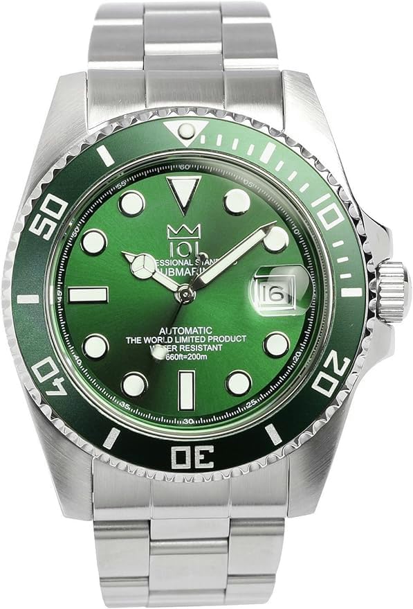 Часы Hyakuichi Автоматические Автоматические с функцией остановки заводной головки Механические Отображение даты 200-метровый водонепроницаемый безель Часы Зеленые [HYAKUICHI 101] № 7 Дайверские
