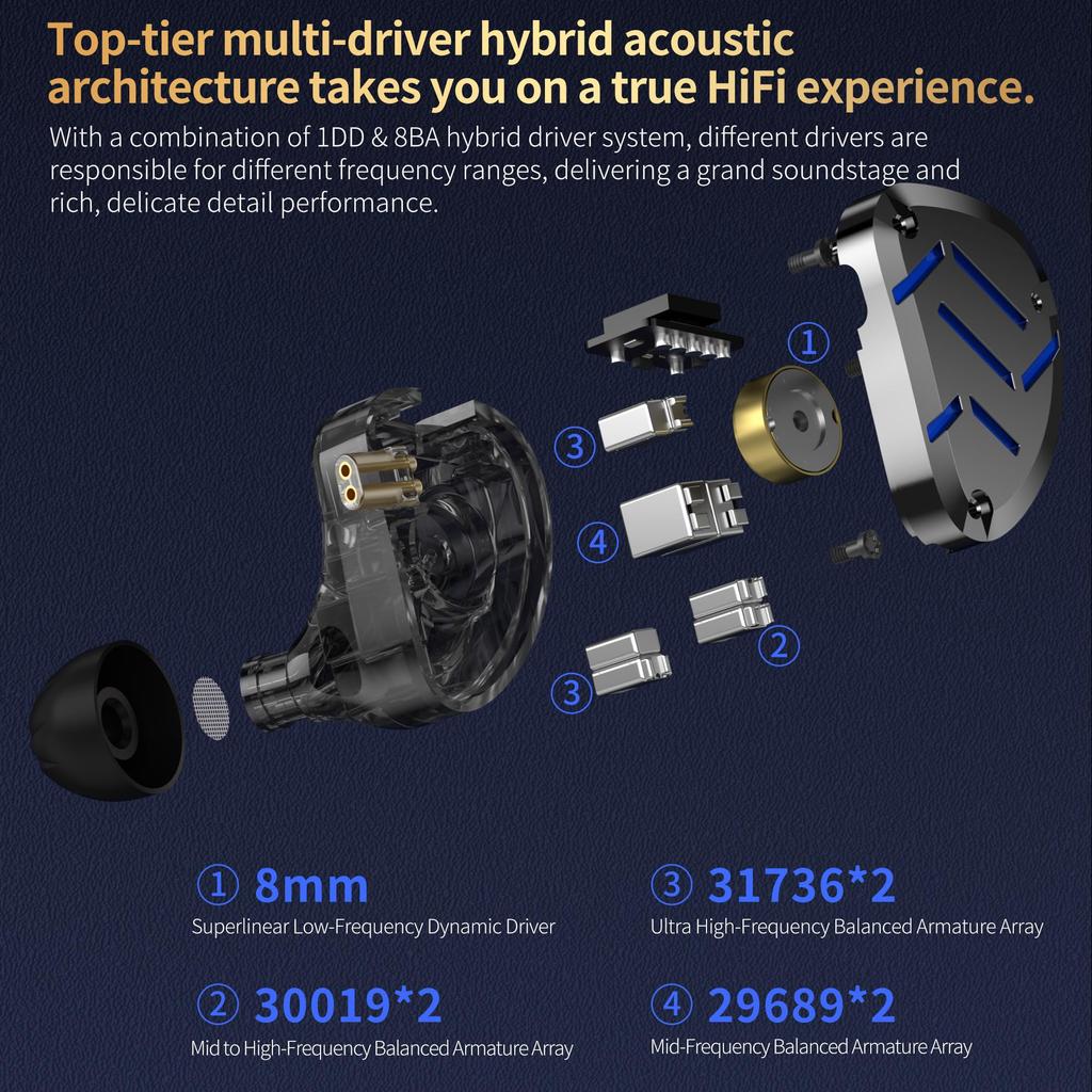 【Высокое качество звука】Эти наушники-вкладыши оснащены акустическим дизайном 9BA-драйвера, который сочетает в себе сбалансированный арматурный драйвер и 4 настроечных переключателя для достижения превосходной четкости басов, средних и высоких частот.. Превосходное качество звука позволяет стримерам часами погружаться в процесс прослушивания.