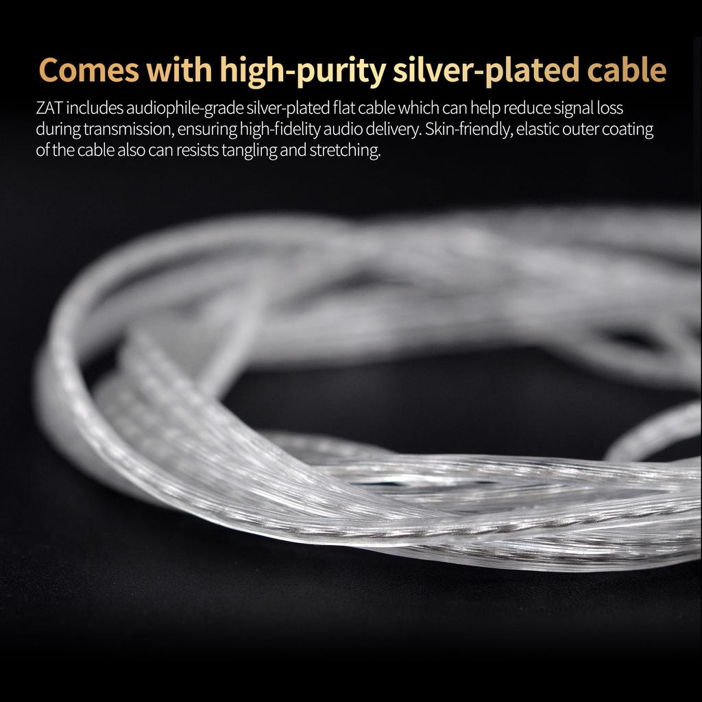 【Изысканная технология】В наушниках-вкладышах ZAT используются 8 усовершенствованных посеребренных проводов, которые износостойкие, прочные на растяжение и не ломаются.. Посеребренный сердечник провода эффективно противостоит помехам. Позолоченная конструкция со сменными разъемами продлевает срок службы. Заметной задержки нет.. Вы можете превратить свои наушники в беспроводные, заказав Bluetooth-адаптер.