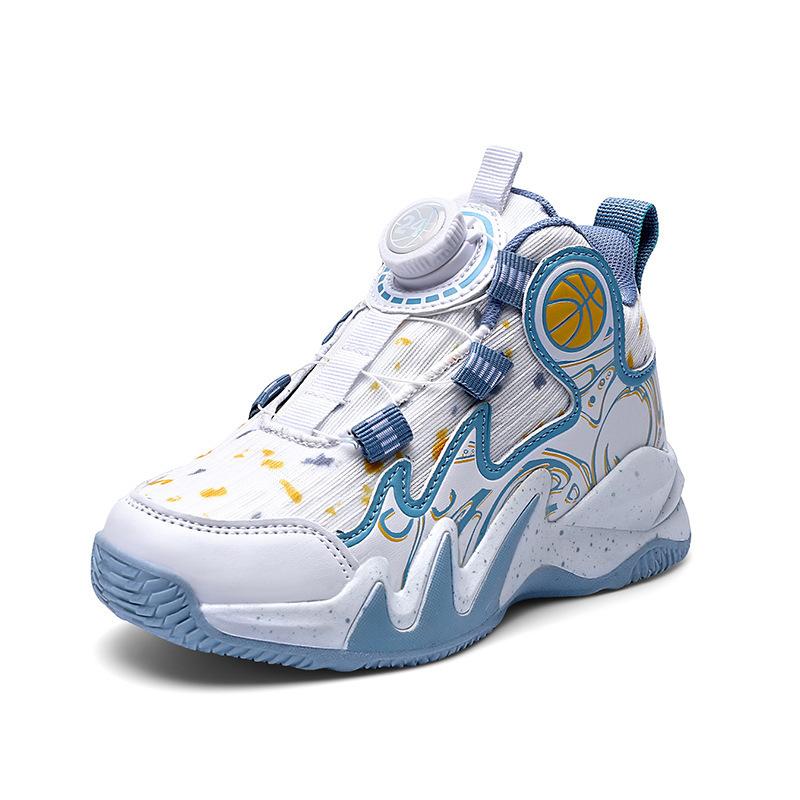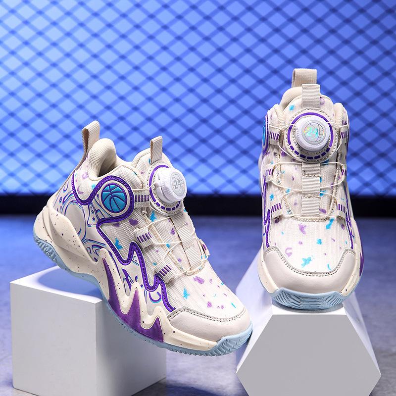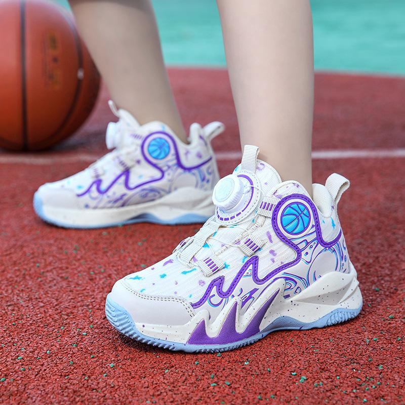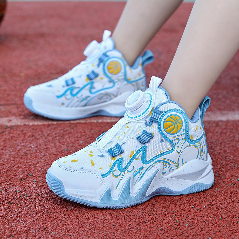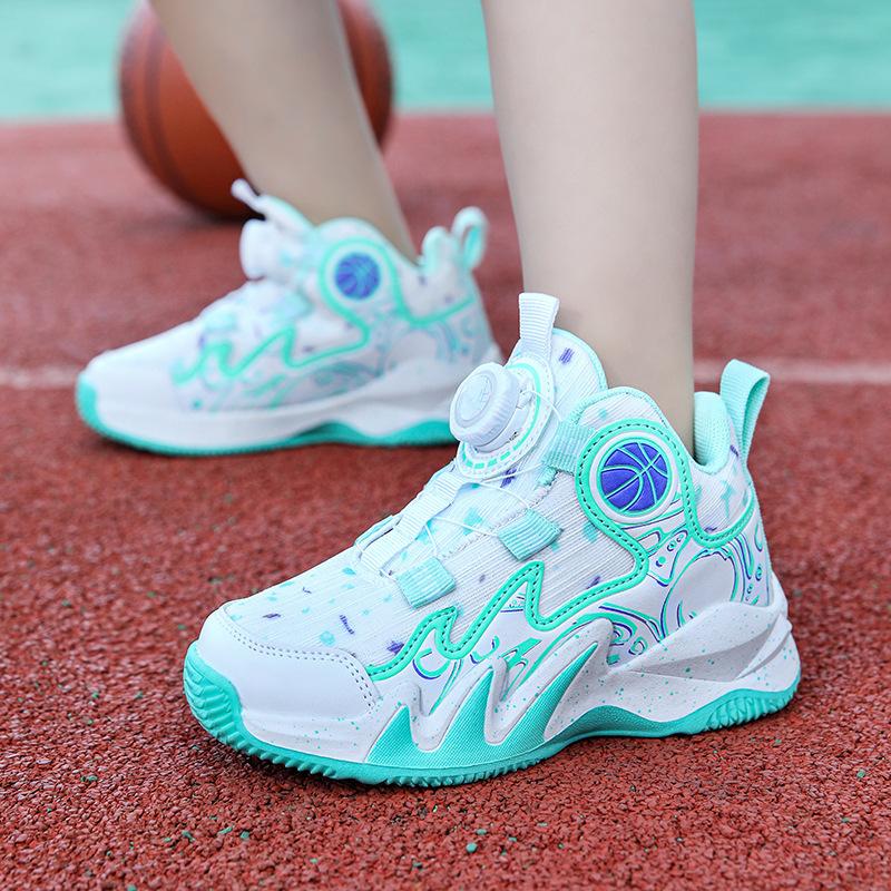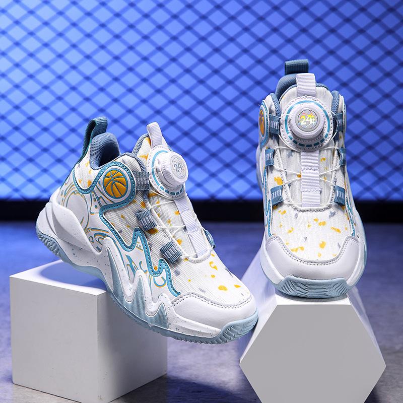 Баскетбольные кроссовки 2024 года, новые осенние дышащие сетчатые детские нескользящие и износостойкие профессиональные боевые спортивные туфли с вращающимися кнопками