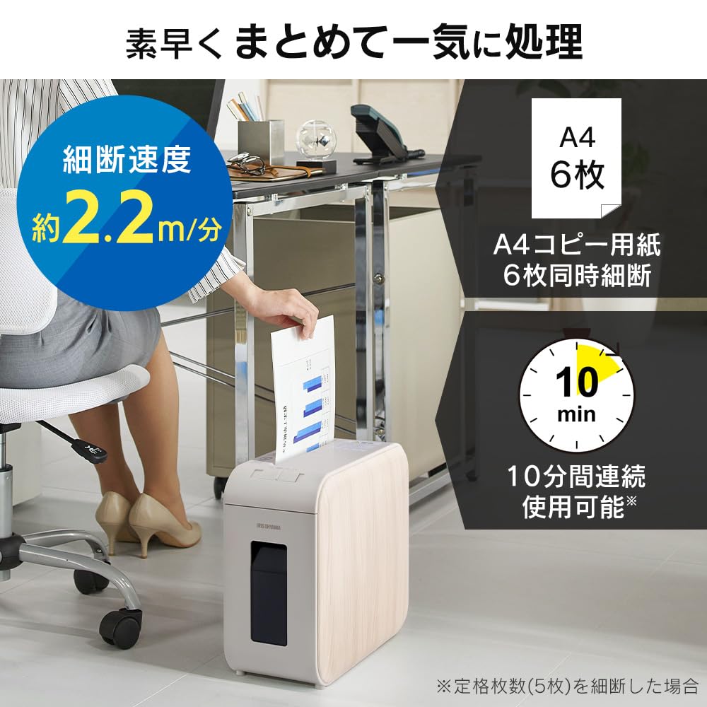 IRIS OHYAMA Бесшумный шредер для дома Измельчает 6 листов крест-накрест Непрерывное использование в течение 10 минут Пылесборник вмещает Можно использовать, не беспокоясь о Поставляется с измельченным