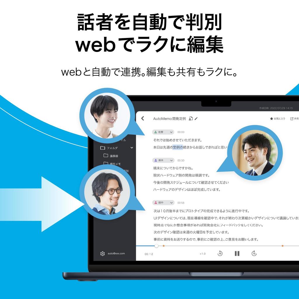 «AutoMemo» от SourceNext — это диктофон, который может автоматически преобразовывать записанные аудиофайлы в текст.. Это полезный инструмент для создания заметок о встречах, протоколов, статей-интервью и т. д.. Данный продукт представляет собой комплект, включающий в себя сам «AutoMemo» и «50 часов транскрипции».