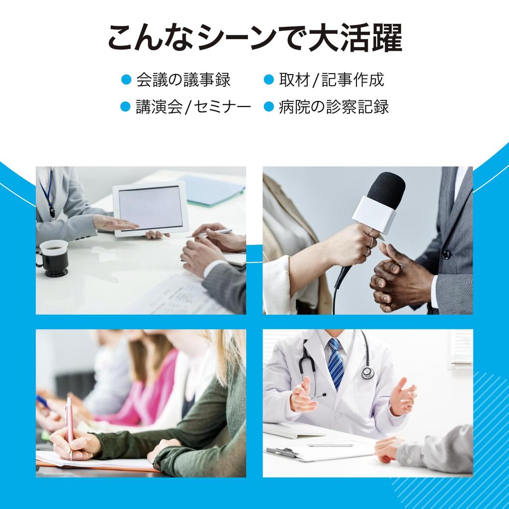 Пункт 2: Автоматическое преобразование текста с использованием ИИ: Специальное приложение автоматически преобразует речь в текст. Поскольку он использует высокопроизводительную технологию распознавания речи, его можно транскрибировать с высокой точностью.. Уменьшает утомительный ручной ввод символов. ・Сбор за преобразование текста: Записанные файлы можно бесплатно воспроизводить в специальном приложении.. Для услуг по конвертации текста доступны три структуры ценообразования:. Вы можете выбрать в соответствии с частотой использования.. Подробную информацию можно найти на официальном сайте.