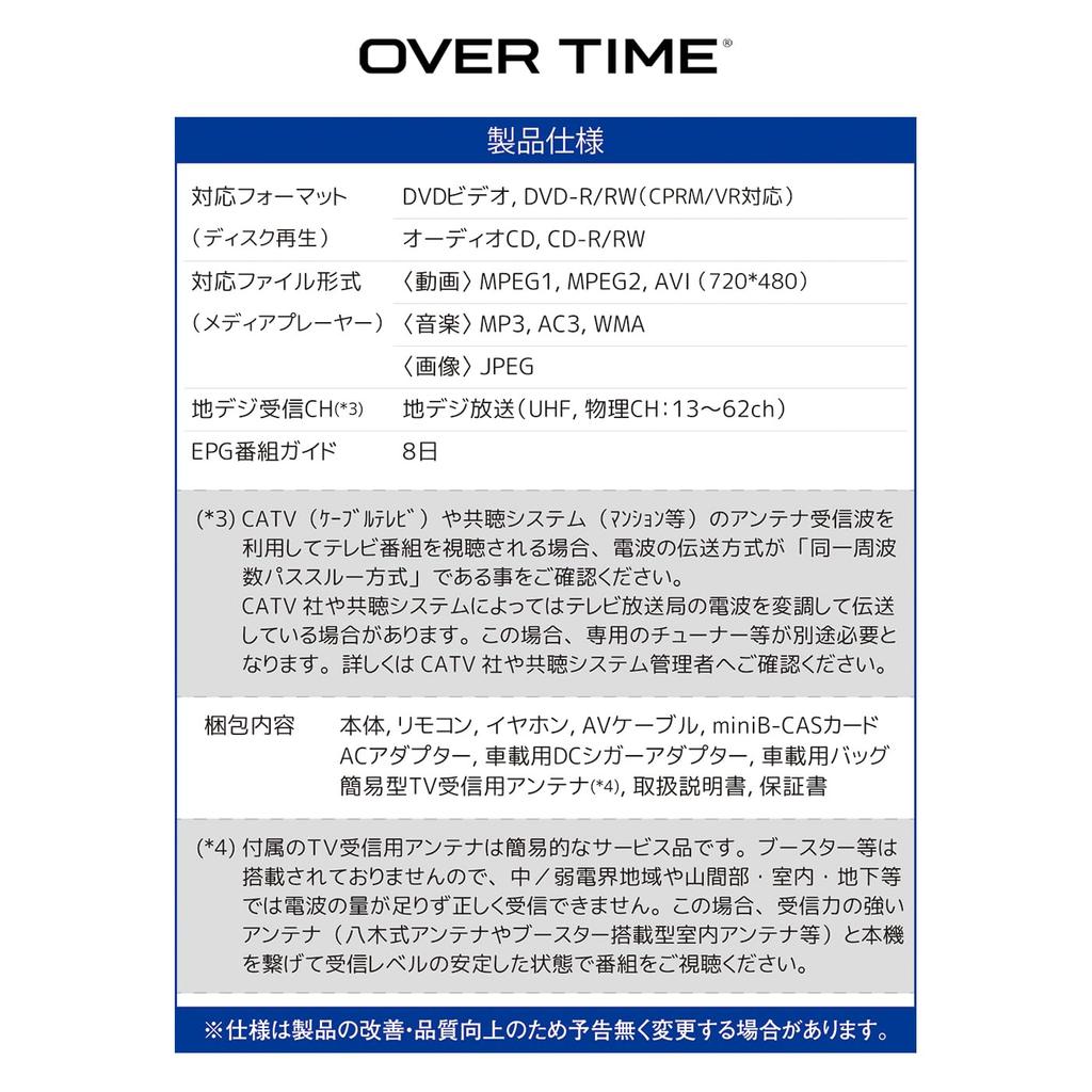 Дистанционное управление (с пробной батареей), наушники, адаптер переменного тока, адаптер для прикуривателя, сумка для крепления в автомобиле, кабель для подключения AV, карта miniB-CAS, простая антенна, гарантия на продукт