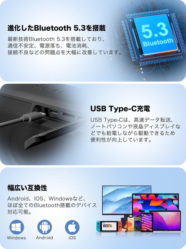 🔵 [Высококачественный Bluetooth-динамик мощностью 50 Вт, выпущенный осенью 2023 года] Этот продукт оснащен динамиком мощностью 25 Вт + 25 Вт, который обеспечивает сбалансированный и мощный звук, который богато передает тон вашего вокала независимо от жанра, который вы слушаете. Каждая мелодия и звук инструмента четко воспроизводятся в деталях независимо от диапазона, что дает вам ощущение глубины звука.. В целом, он воспроизводит очень хорошо сбалансированную и красивую мелодию, и она превосходна, без каких-либо недостатков.. Если вы хотите наслаждаться мощной музыкой даже в большой комнате или хотите получить плотный звук даже на открытом воздухе, выбирайте динамик с более высокой мощностью.