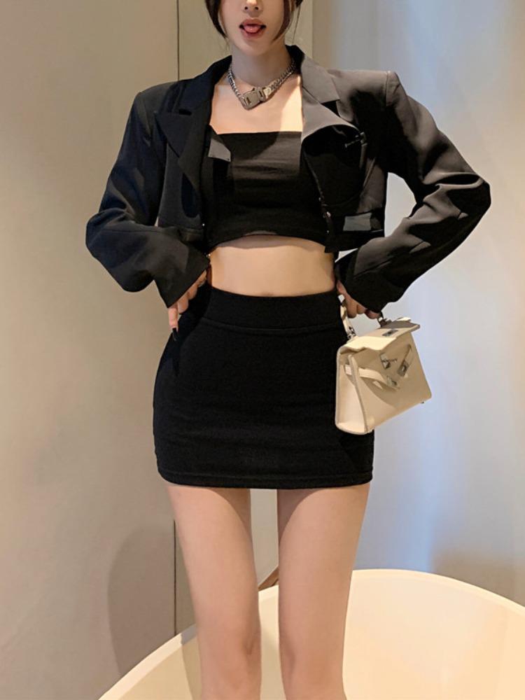 2025 Черная мини-юбка с высокой талией - женская сексуальная эластичная юбка на бедрах