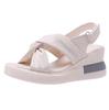 Босоножки на танкетке с бантом, женские летние новые римские сандалии с перекрестными ремешками, простые женские туфли с рыбьим ртом C393