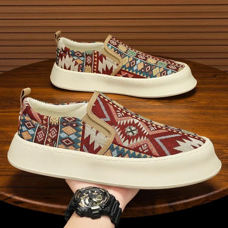 Мужская парусиновая обувь с принтом в этническом стиле. Дизайнерские лоферы на платформе. Дышащие повседневные кроссовки. Мужские эспадрильи без шнуровки.