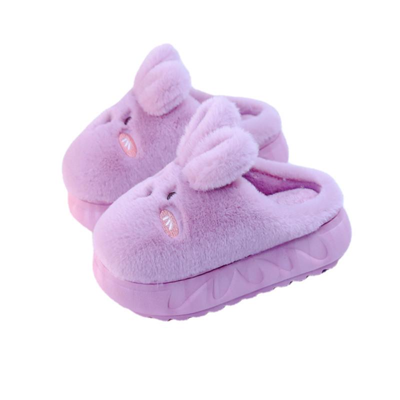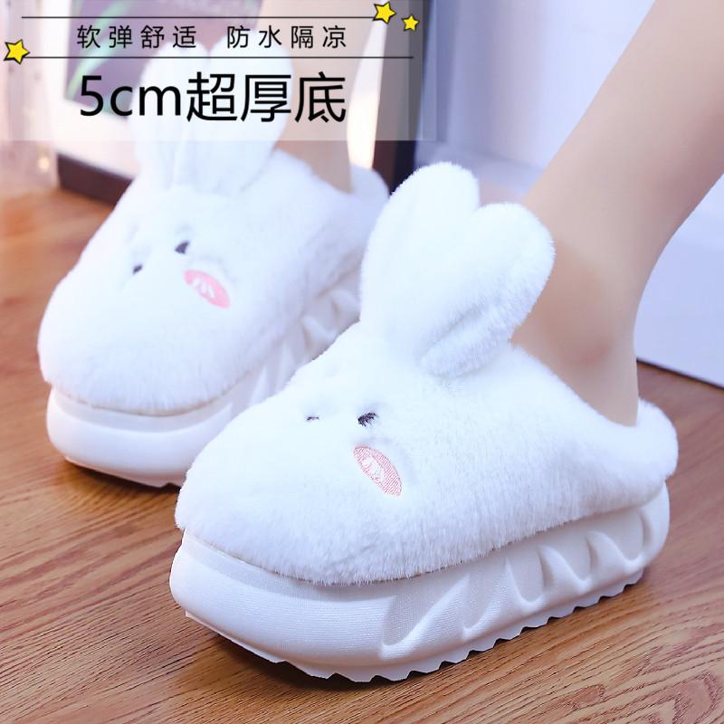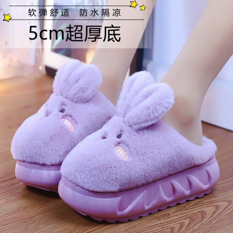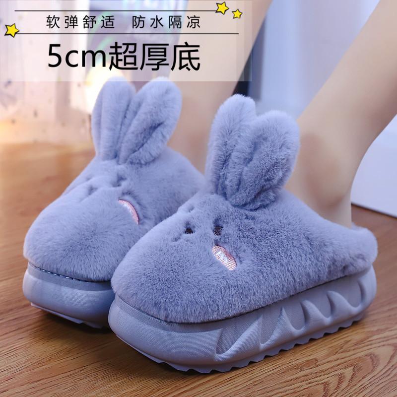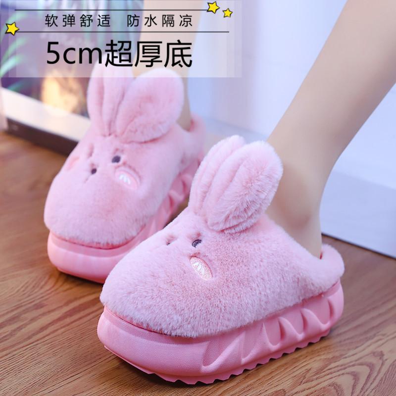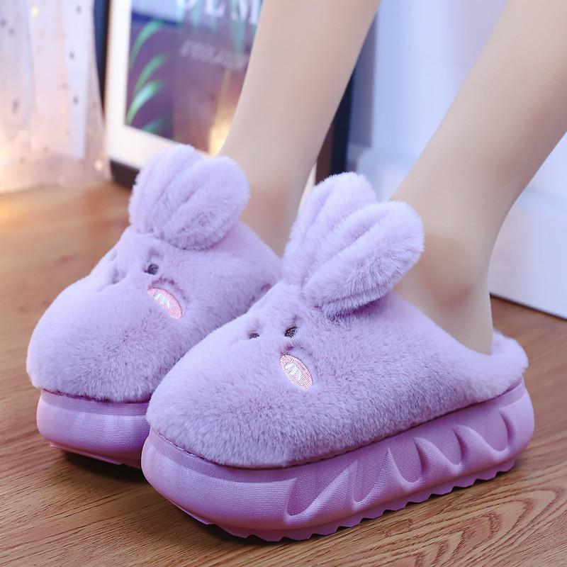 Милые тапочки с толстым дном в виде кролика 2024 года, новые женские осенне-зимние плюшевые теплые хлопковые тапочки, женские домашние тапочки для улицы