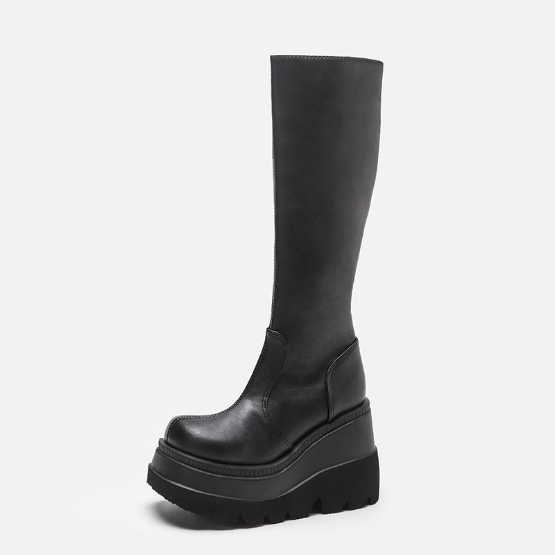 Женские сапоги до колена, женские кожаные сапоги на молнии с пряжкой, женские туфли на низком каблуке, женские туфли с пряжкой на ремне, готические туфли