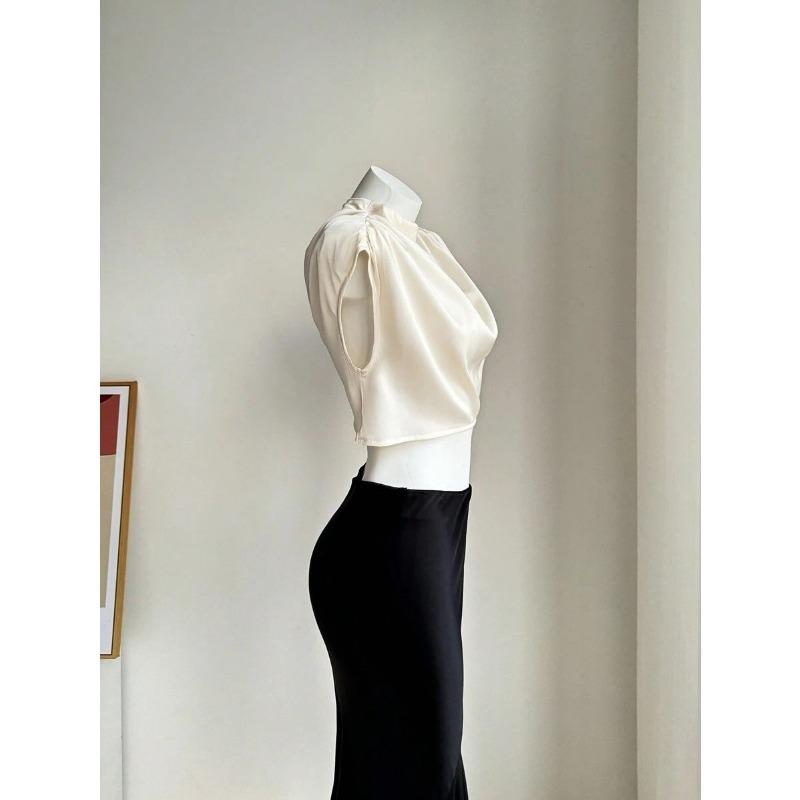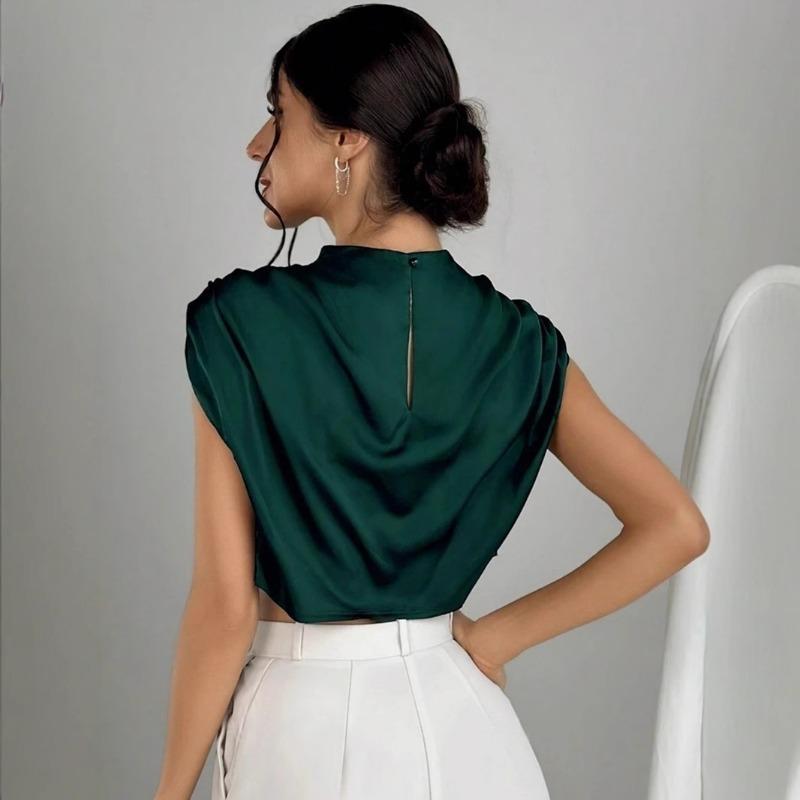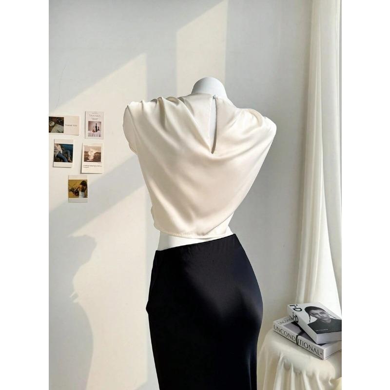Женская атласная рубашка весна-лето в складку, цвет Ding, имитация шелка, короткая рубашка