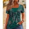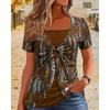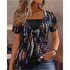 Женская новая поддельная двухсекционная круглая этническая принтованная повседневная с короткими рукавами