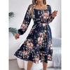 Женское платье А-силуэта с цветочным принтом, квадратным вырезом, длинными рукавами, приталенными оборками, весна-лето