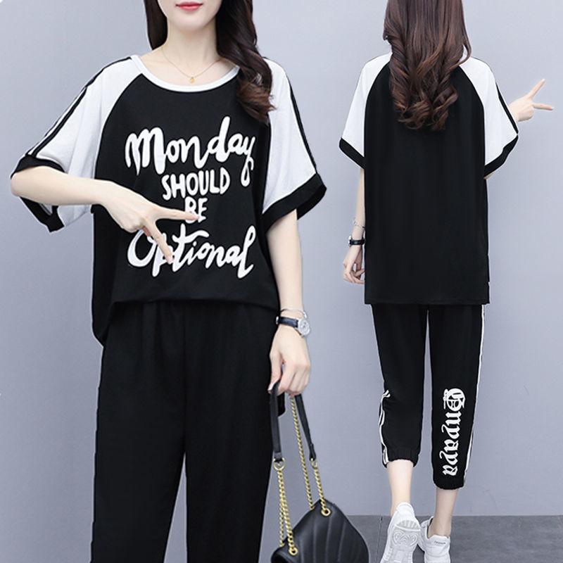 Женский свободный летний комплект одежды больших размеров, новый стиль, топы с короткими рукавами большого размера и брюки длиной семь с половиной — купить товар онлайн с бесплатной доставкой по всему миру!