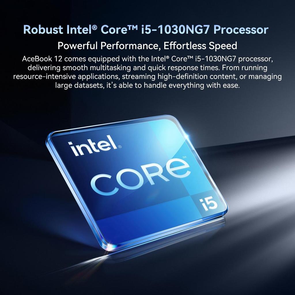 AceBook 12 оснащен процессором Intel® Core™ i5-1030NG7, обеспечивающим бесперебойную многозадачность и высокую производительность.. Будь то воспроизведение видео 4K, ресурсоемкие игры или большие наборы данных — этот ноутбук справится со всем без усилий.. С 16 ГБ оперативной памяти и 512 ГБ SSD (расширяемый до 2 ТБ), вы будете наслаждаться бесперебойной работой и большим объемом памяти для всех ваших файлов. Этот ноутбук, оснащенный Windows 11 Pro, повышает вашу производительность благодаря передовым функциям и инструментам.. Кроме того, двухдиапазонный Wi-Fi обеспечивает высокую скорость интернета для плавной потоковой передачи и бесперебойной работы.. Благодаря 7 универсальным портам AceBook 12 упрощает подключение периферийных устройств как для работы, так и для развлечений.. Интегрированный чип безопасности, а также кнопка питания со сканером отпечатков пальцев обеспечивают быстрый и безопасный доступ.