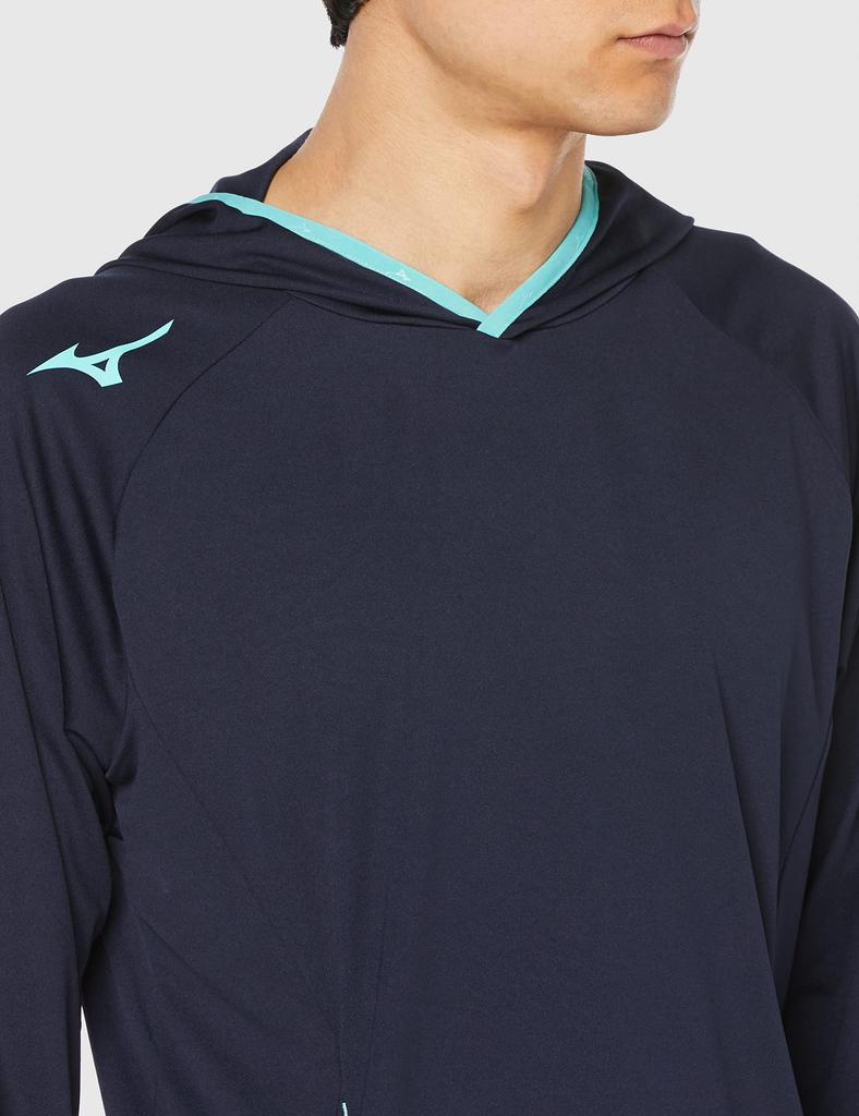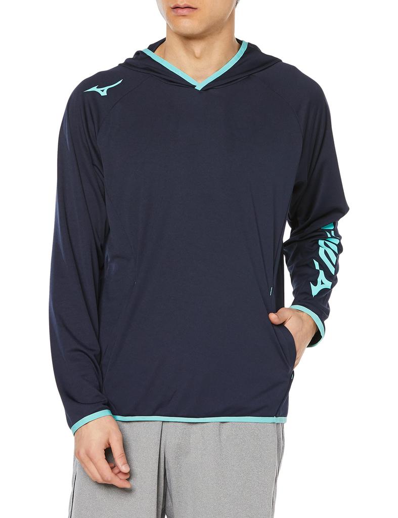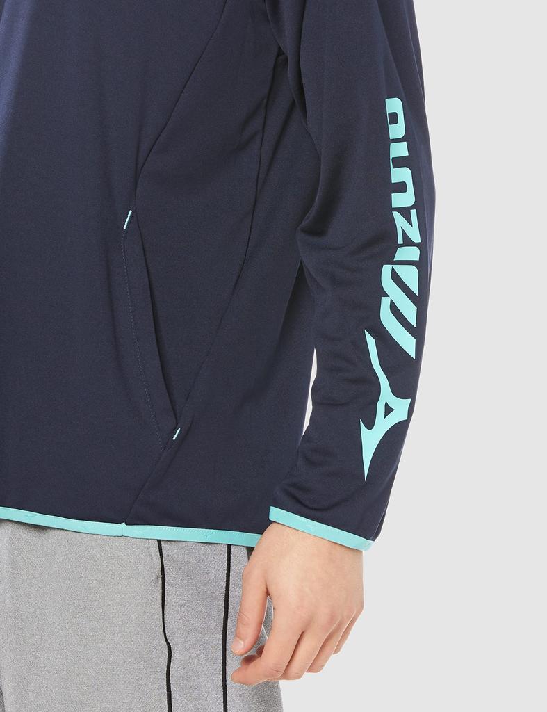 Теннисная толстовка-парка, впитывающая пот, быстросохнущая, 62JC1005, глубокий S [Mizuno], для разминки, темно-синий/бирюзовый