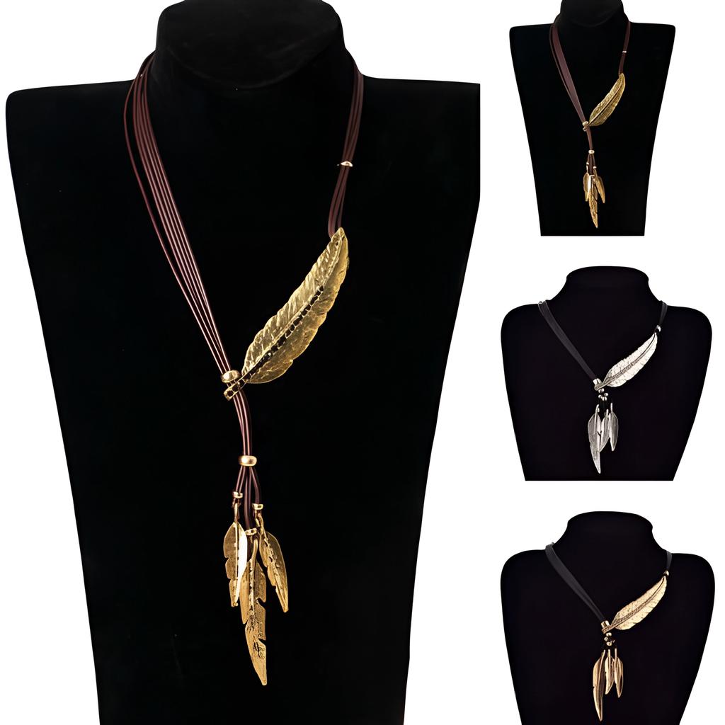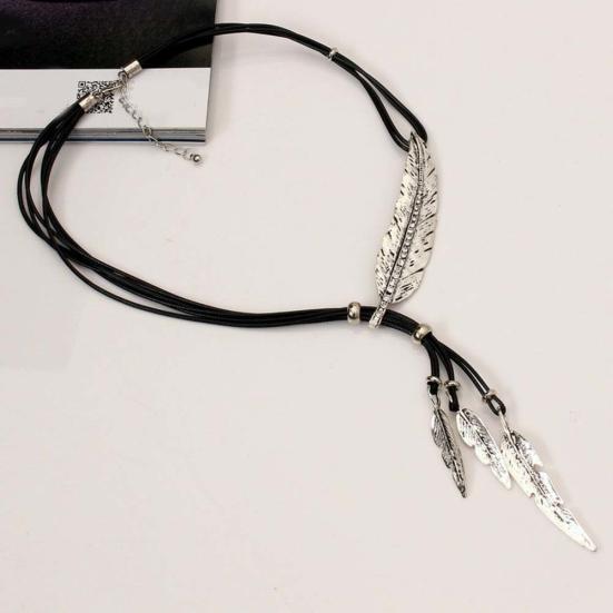 Богемный женский кулон из перьев со стразами, ожерелье из искусственной кожи, ювелирные изделия