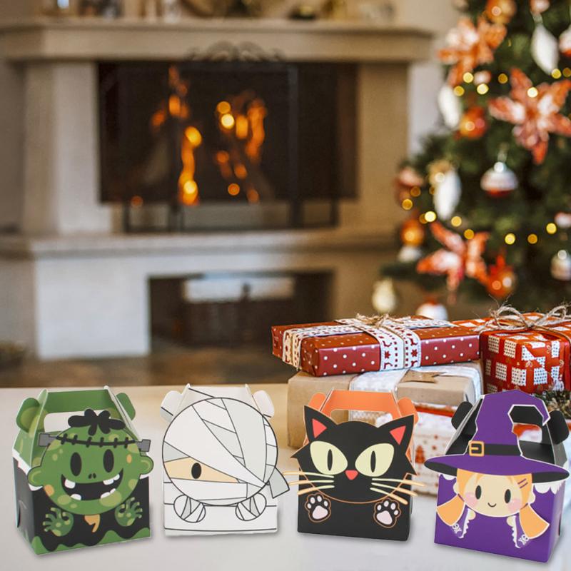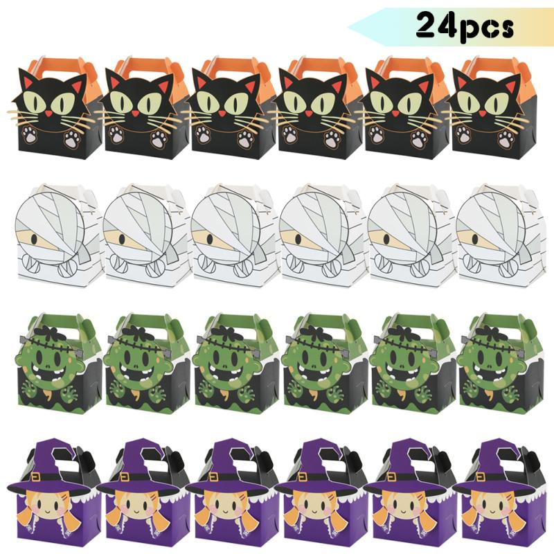24 шт., 4 стиля, бумажные коробки для лакомств, милые подарочные пакеты на Хэллоуин для конфет, печенья, шоколадных пончиков, тортов
