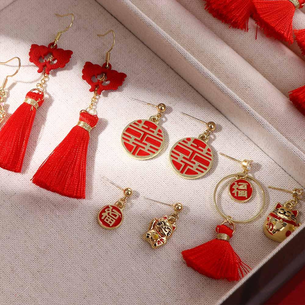 Lucky Cat Свадебные модные ювелирные изделия женские серьги-капли серьги в китайском стиле серьги с китайским узлом
