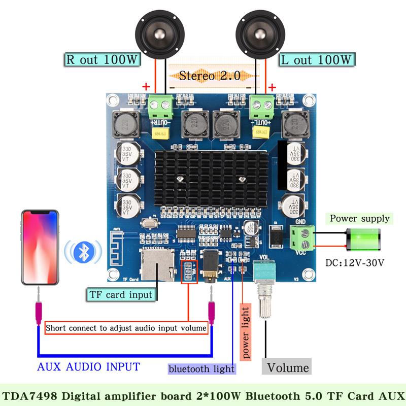 XH-A105 Bluetooth 5,0 TDA7498 Плата цифрового усилителя 2x100 Вт Стерео аудио модуль AMP Поддержка TF-карты