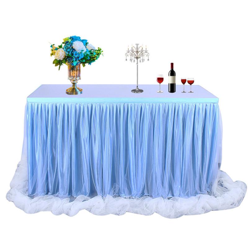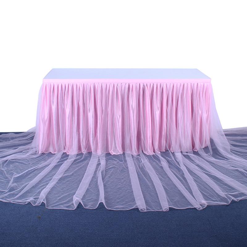 Юбка для стола с резьбой и тюлем, элегантное украшение свадебного стола для вечеринки(Длинный тюль)
