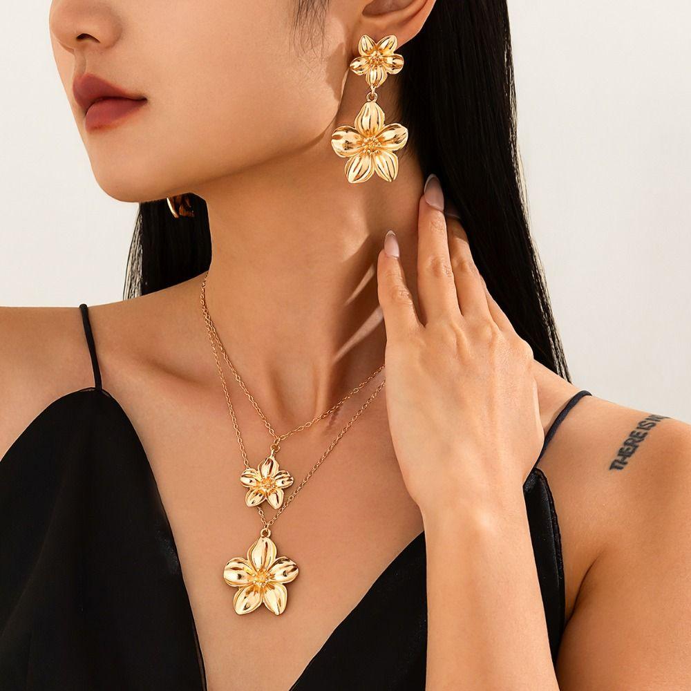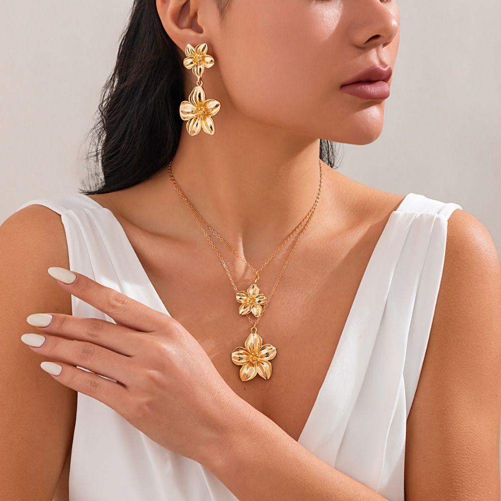 Romantic Flower Necklaces Earrings Light Luxury Women's Necklace Jewelry Gifts