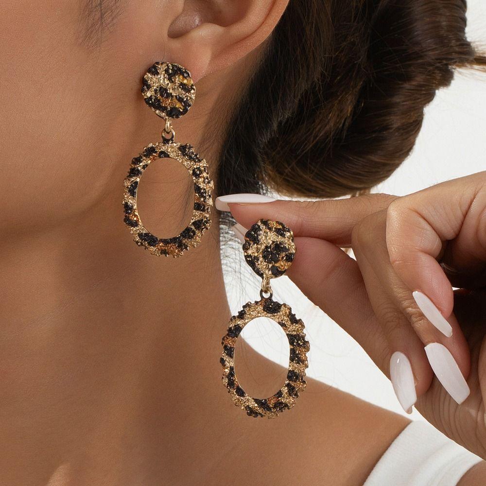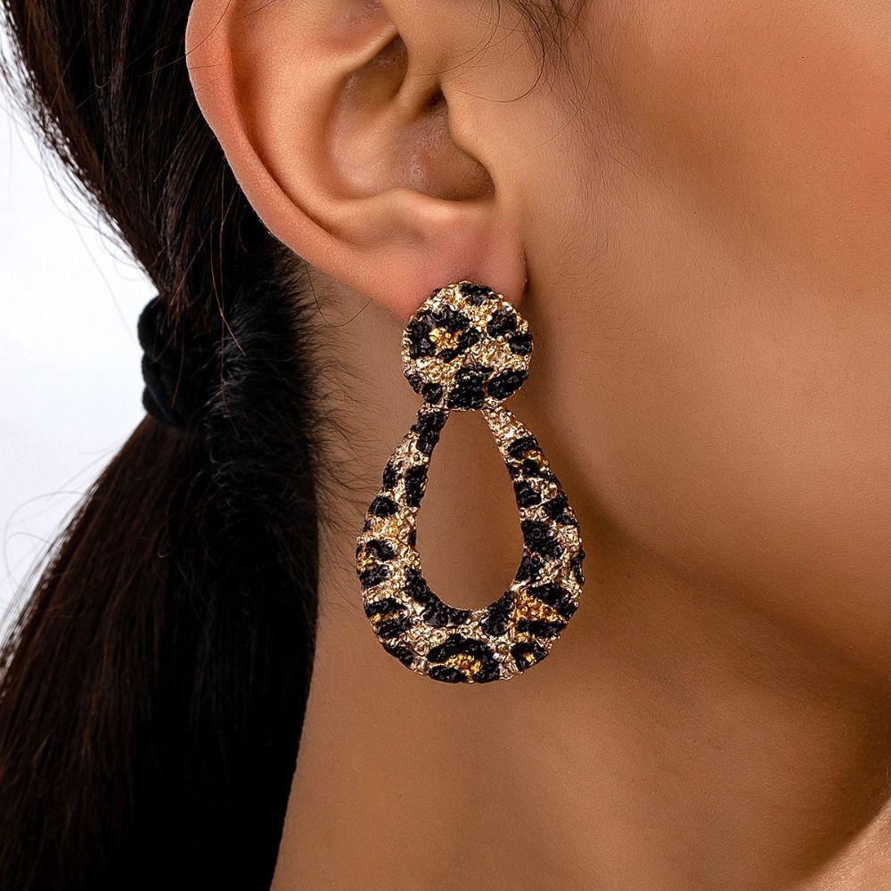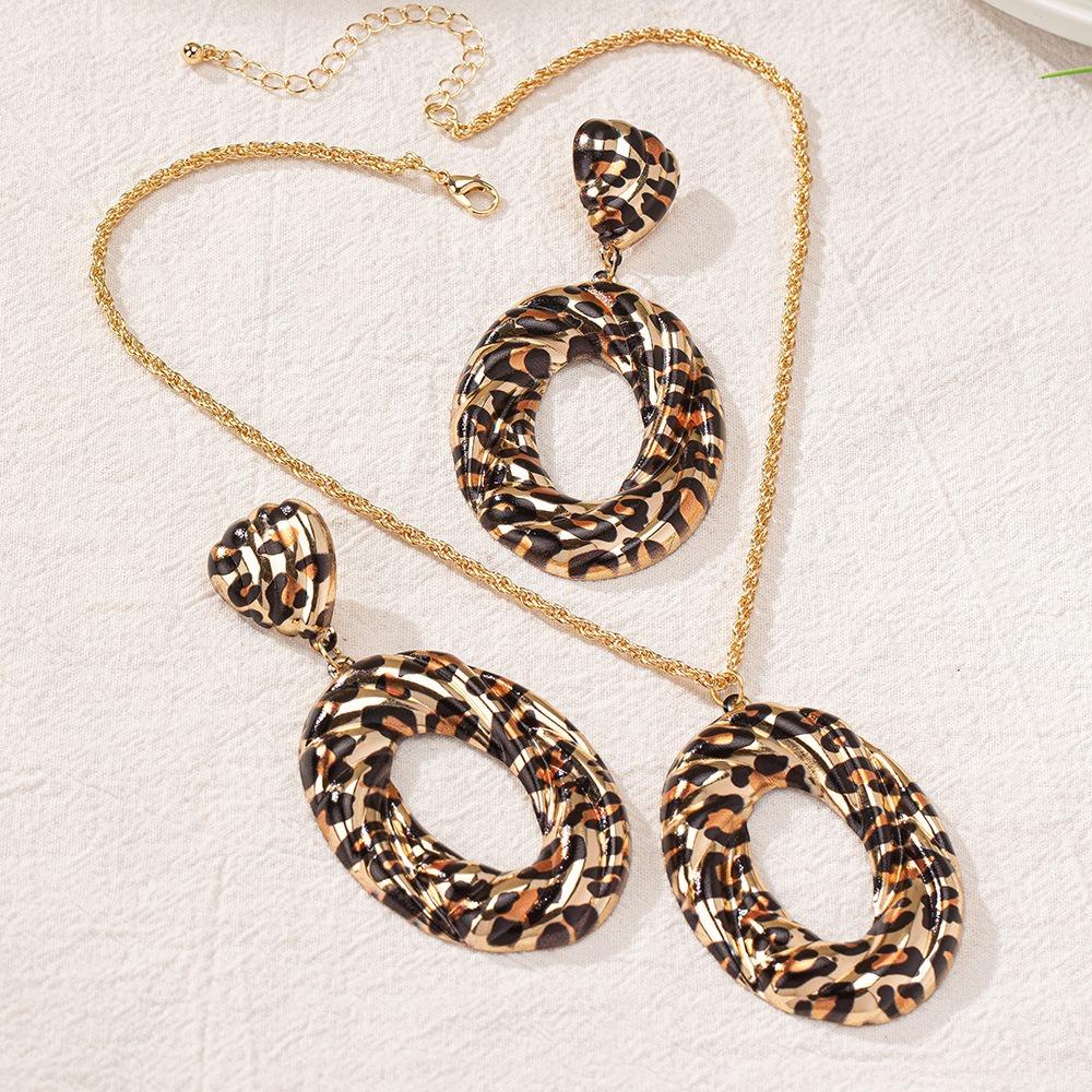Преувеличенные серьги-капли с леопардовой текстурой, серьги-подвески, современный комплект ожерелья для женщин
